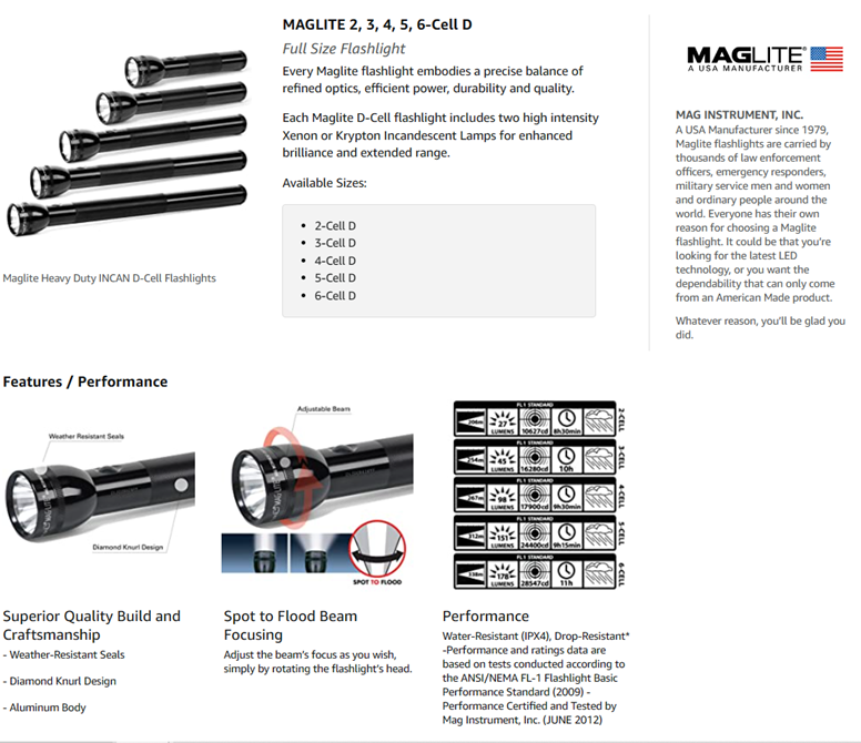 | Included Components | Maglite Heavy-Duty Incandescent 4-Cell D Flashlight, Black |