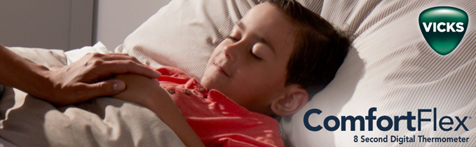Get temperature results quickly and easily, when you need them most. The Vicks ComfortFlex Digital Thermometer provides accurate readings within +/- 0.2 degrees F in only 8 seconds. Designed for comfort and convenience, this thermometer has a flexible tip. The unique Fever InSight guide helps you get temperature readings at a glance with a color coded display, and understand them easily. A green display suggests a normal temperature, yellow signifies an elevated temperature and a red display indicates a high temperature. Because it can be used as an adult thermometer for oral readings as well as be used a rectal thermometer for babies or even used under the arm for toddlers and kids, it’s perfect for the whole family. It also has a memory feature that recalls and displays last temperature taken and is waterproof for easy, thorough cleaning. Plus, this temp thermometer includes a storage case, battery and has a limited 1 year warranty.