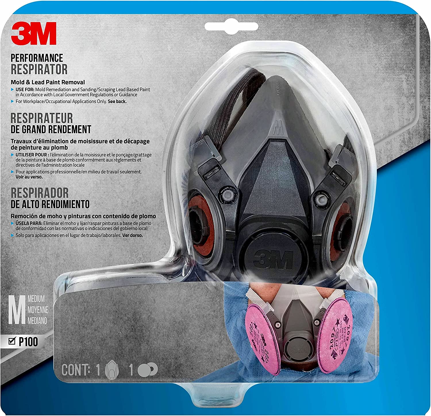 Removing lead paint and mold requires great responsibility and the appropriate protection. The 3M 6297 Mold and Lead Paint Removal Respirator helps filter out airborne particles plus nuisance organic vapors* while you're sanding and scraping, and adjustable features help provide a comfortable fit. For professional use only, this respirator can be used from one job to the next with replaceable filters. Whether you're flipping an older home, or cleaning up water damage, help protect yourself and your crew with the 3M 6297 Mold and Lead Paint Removal Respirator.