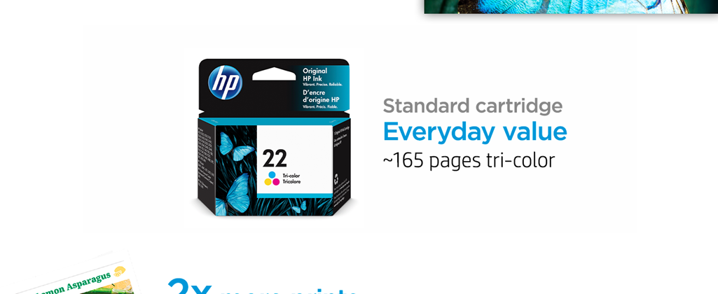 Make your basic color printing more impressive with the dye-based HP 22 Tri-Color Inkjet Print Cartridge. Designed for low-volume printing, it ensures beautiful results even with periods of non-use. Great for long-lasting images and photos!