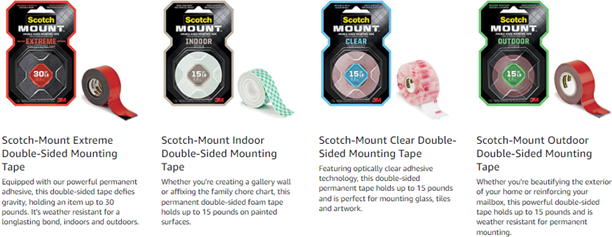 For items that need an undetectable mounting means, reach for the stealth adhering power of Scotch-Mount™ Clear Double-Sided Mounting Tape. Virtually clear, this double-sided permanent tape is perfect for mounting glass, tiles and artwork. Its strong bond holds up to 15 pounds, without the hassle of nails or a hammer because of its 3M™ industrial strength adhesive. So whether you're mounting acrylic cosmetic organizers or a translucent picture frame, affix it confidently with Scotch-Mount™ Clear Double-Sided Mounting Tape.