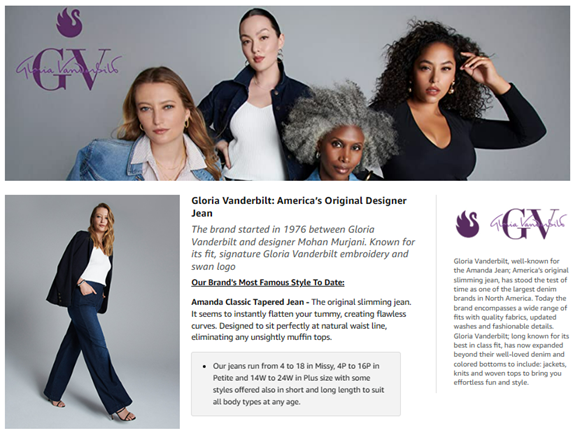 - BRAND - Effortlessly fun and stylish Gloria Vanderbilt is a versatile yet classic look that attracts and connects with the modern sensibility of consumers of all ages.