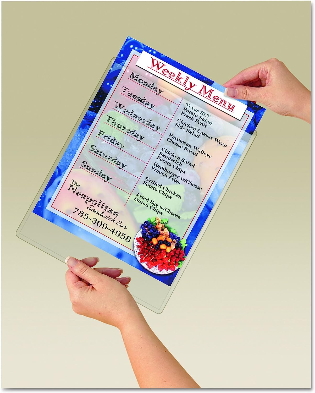 Calendars, menus, maps, signs, schedules, certificates, maps, kids' artwork, photos, ID badges, name tags, luggage tags, recipe cards, business cards, and more.