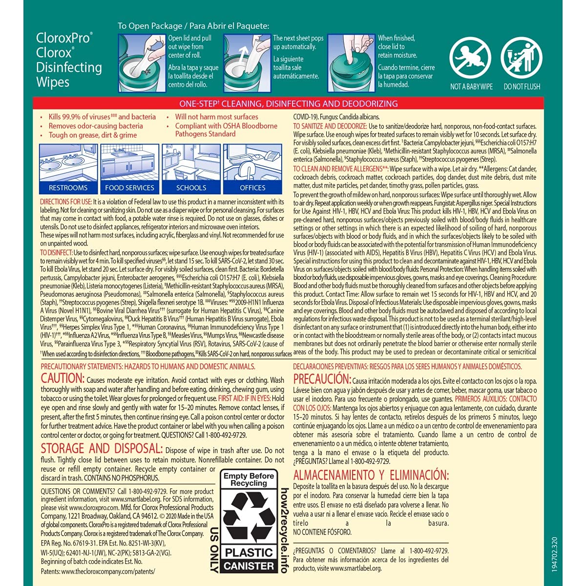 - GREAT FOR COMMERICAL USE: From CloroxPro, these disinfecting wipes are ideal for use on frequently touched surfaces in shared public spaces, offices, athletic facilities, schools, and more