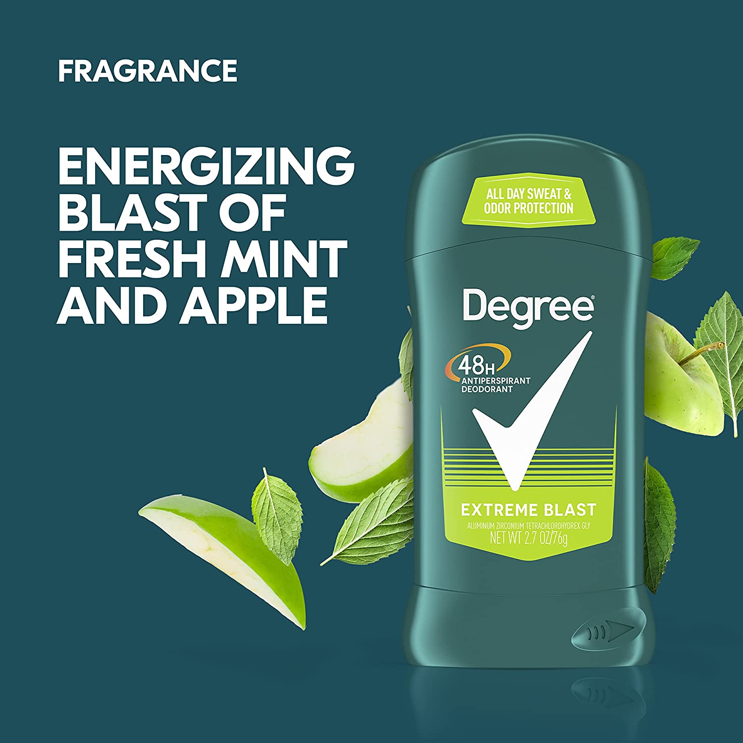 - INVIGORATING SCENT: Stay fresh longer with this antiperspirant for men. Degree Men Extreme Blast Antiperspirant Deodorant features an exhilarating scent to keep you feeling energized