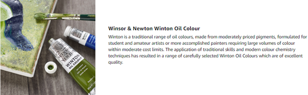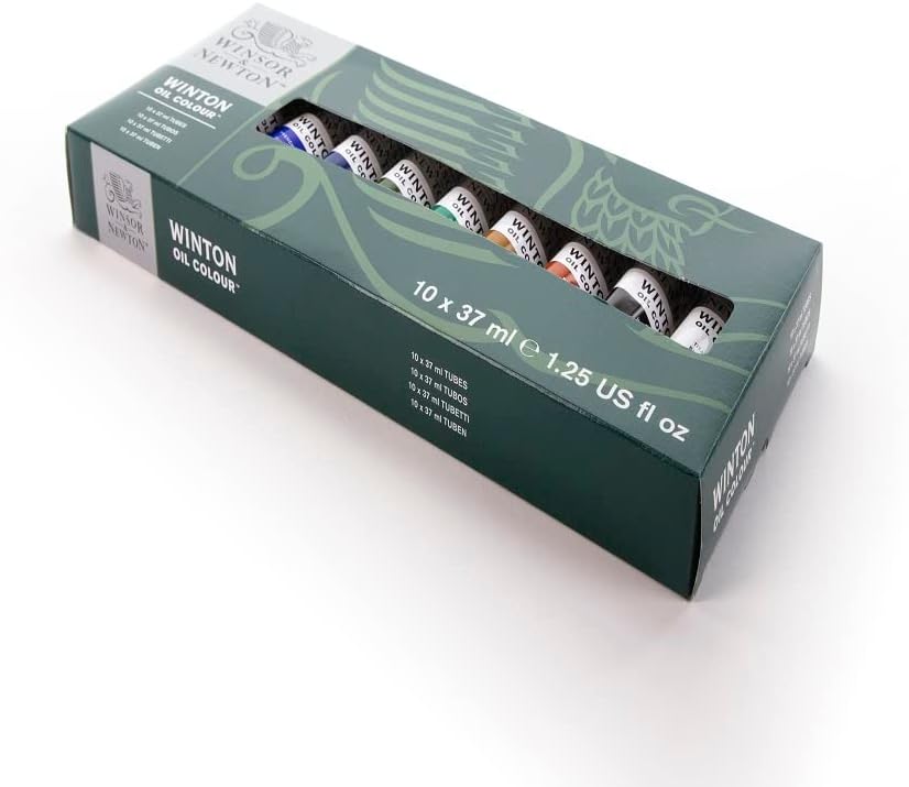 Winton is a traditional range of oil colors, made from moderately priced pigments, formulated for student and amateur artists or more accomplished painters requiring large volumes of color within moderate cost limits. A high level of pigmentation provides good covering power and tinting strength. While it can't match the superior pigment load of Artists' Oil Color, the Winton range is much stronger than many other artists' quality ranges. Winton uses moderately priced pigments rather than lessening the pigment content to an unacceptable level. Winsor & Newton formulation, manufacture and quality control ensure a product of absolute excellence. This set contains ten 1.25 oz. (37 ml) tubes, including one each of Cadmium Yellow Pale Hue, Cadmium Red Deep Hue, French Ultramarine, Phthalo Blue, Viridian Hue, Permanent Green Light, Yellow Ochre, Burnt Sienna, Ivory Black and Titanium White.