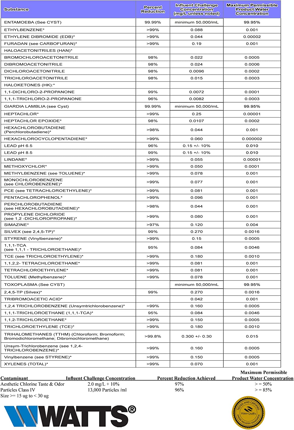 The Watts Premier Filter-Pure UF-3 Water Filtration Device is backed by a three-year limited warranty.