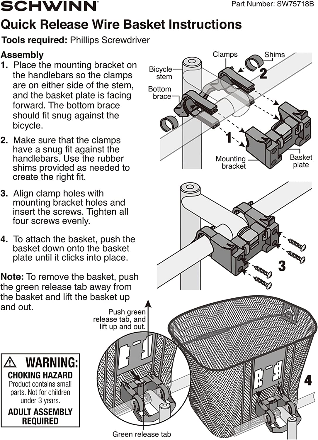 The product is Schwinn Quick Release Wire Basket.