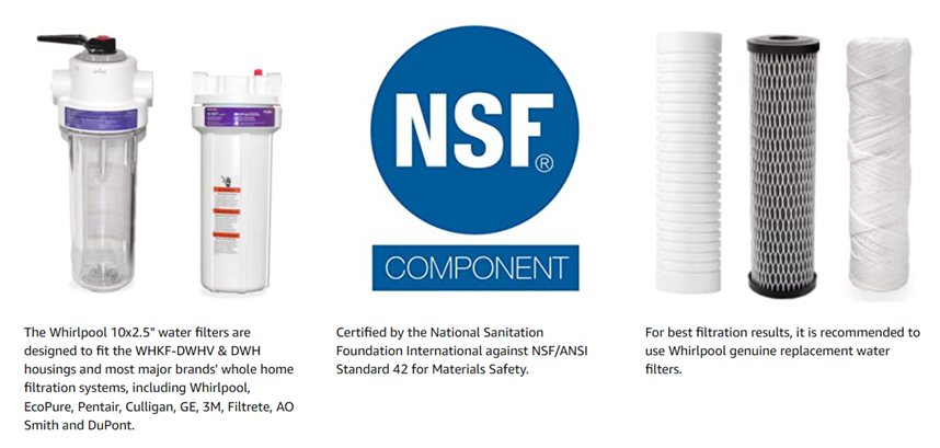 Whirlpool home water filtration systems give you great tasting water throughout your home. We offer a number of home water filters, including whole house, central water, refrigerator ice, and under-sink water filtration that help protect plumbing and appliances and reduce chlorine taste and odor. Whirlpool home water filtration systems also reduce the need for bottled water, helping you save money.