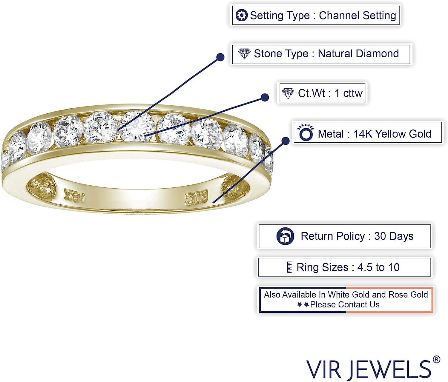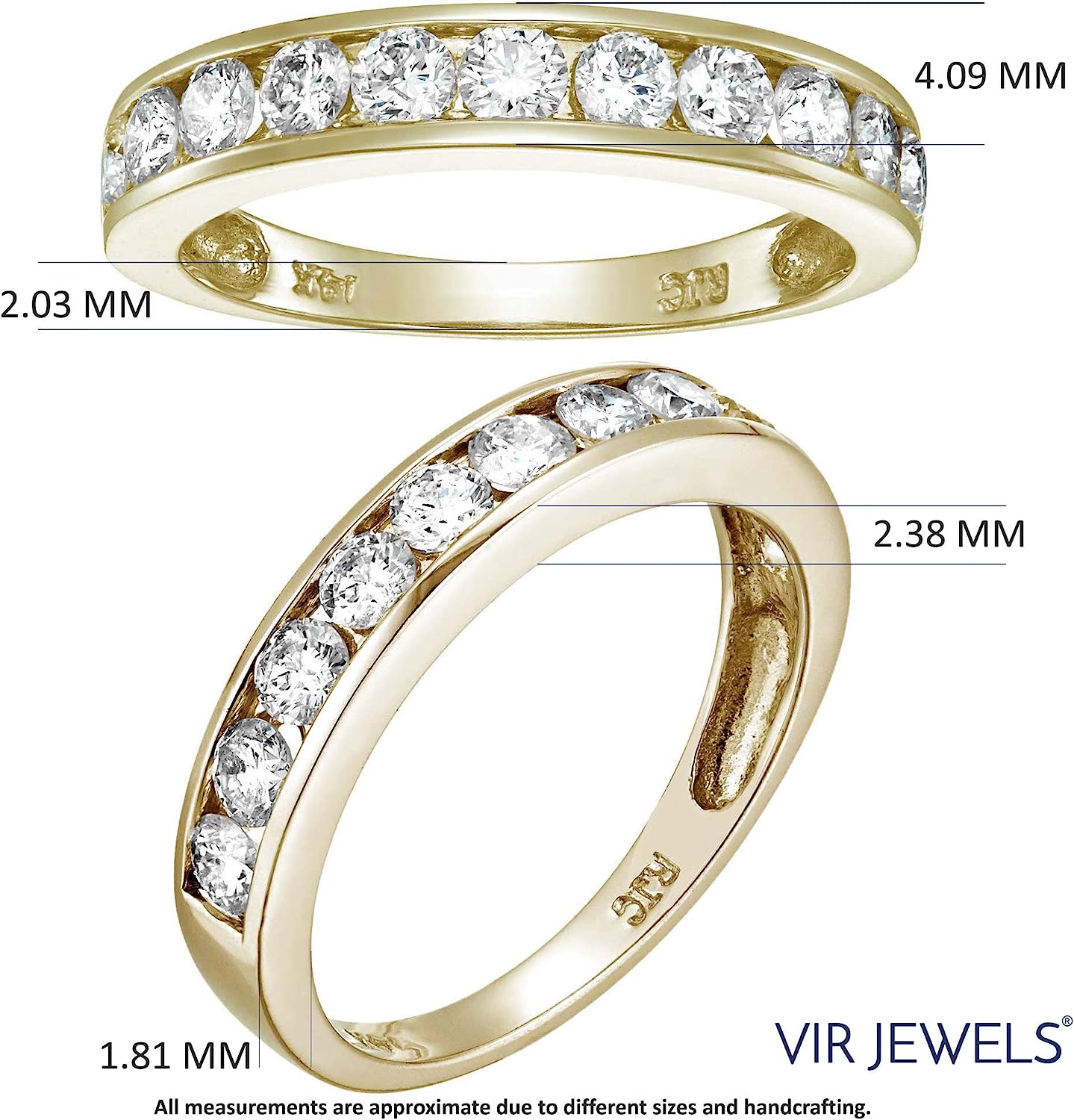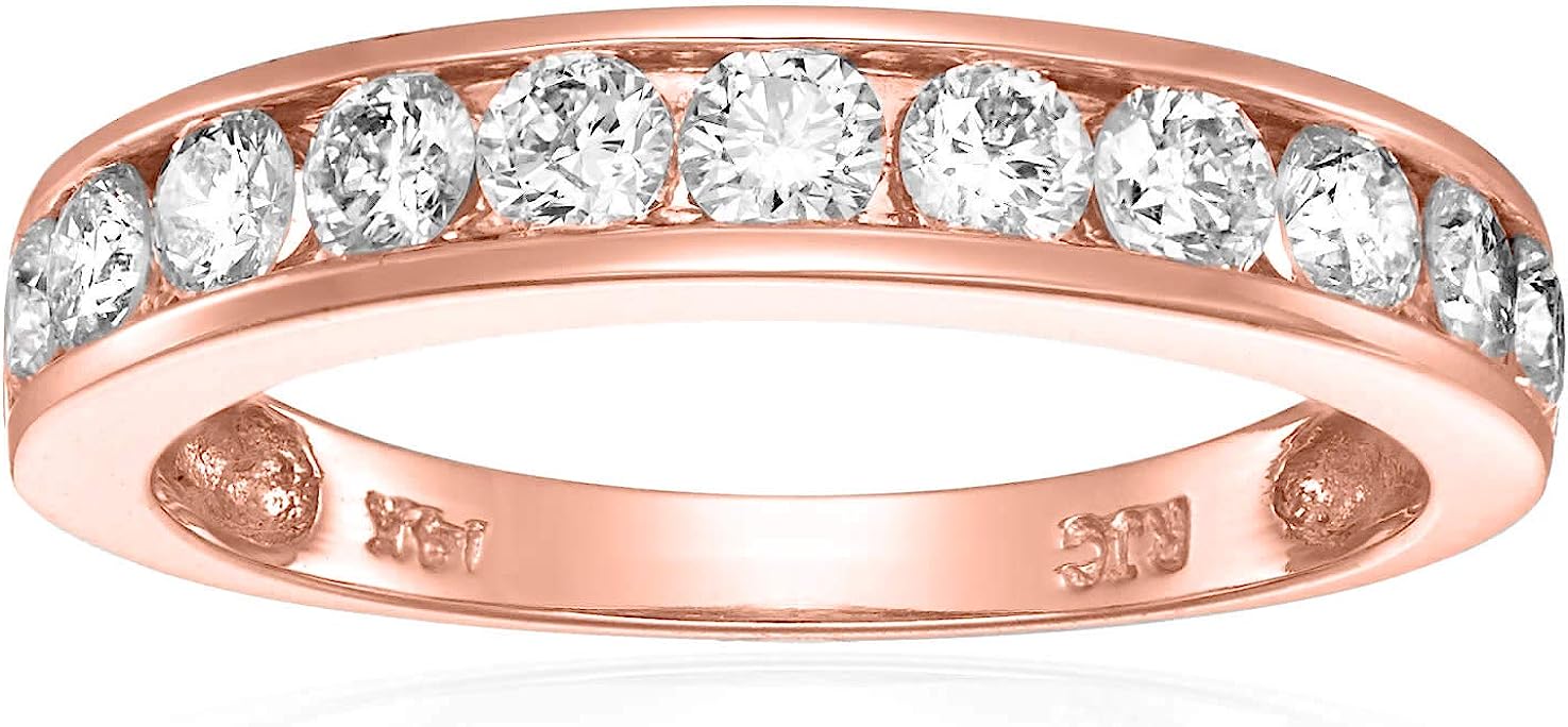 VIR JEWELS 1 carat (ctw) Diamond Wedding Anniversary Band for Women, Half Eternity Round Diamond Engagement Ring 14K Yellow Gold Channel Set, SI2-I1 Clarity Certified, Size 4.5-10