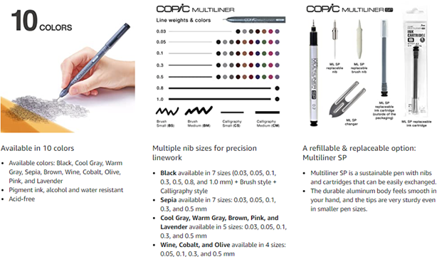 Copic Multiliners are sketching and drawing pens that allow incredible precision and detail.
