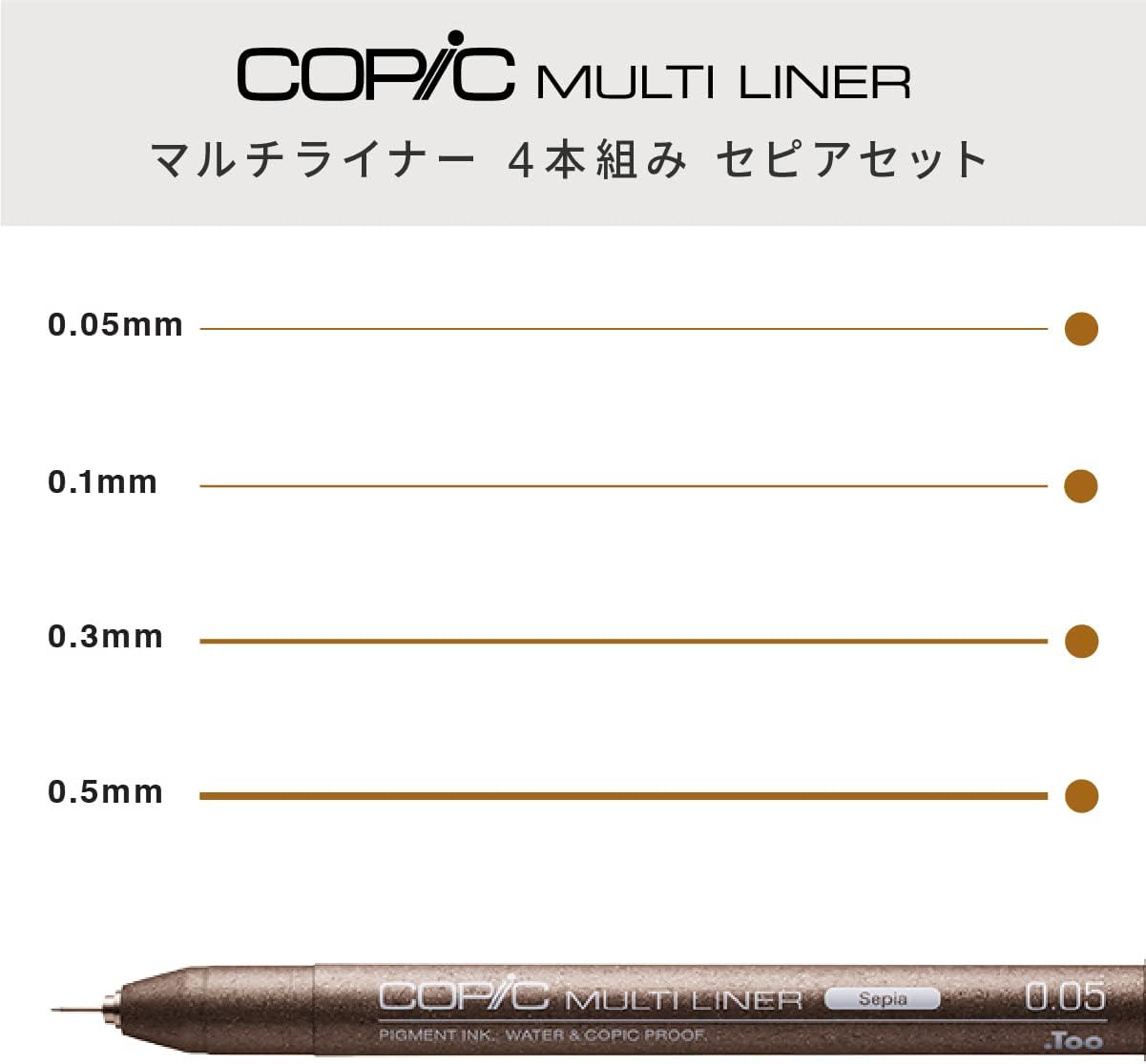 Copic Markers Multiliner Sepia Pigment Based Ink, 4-Piece Set