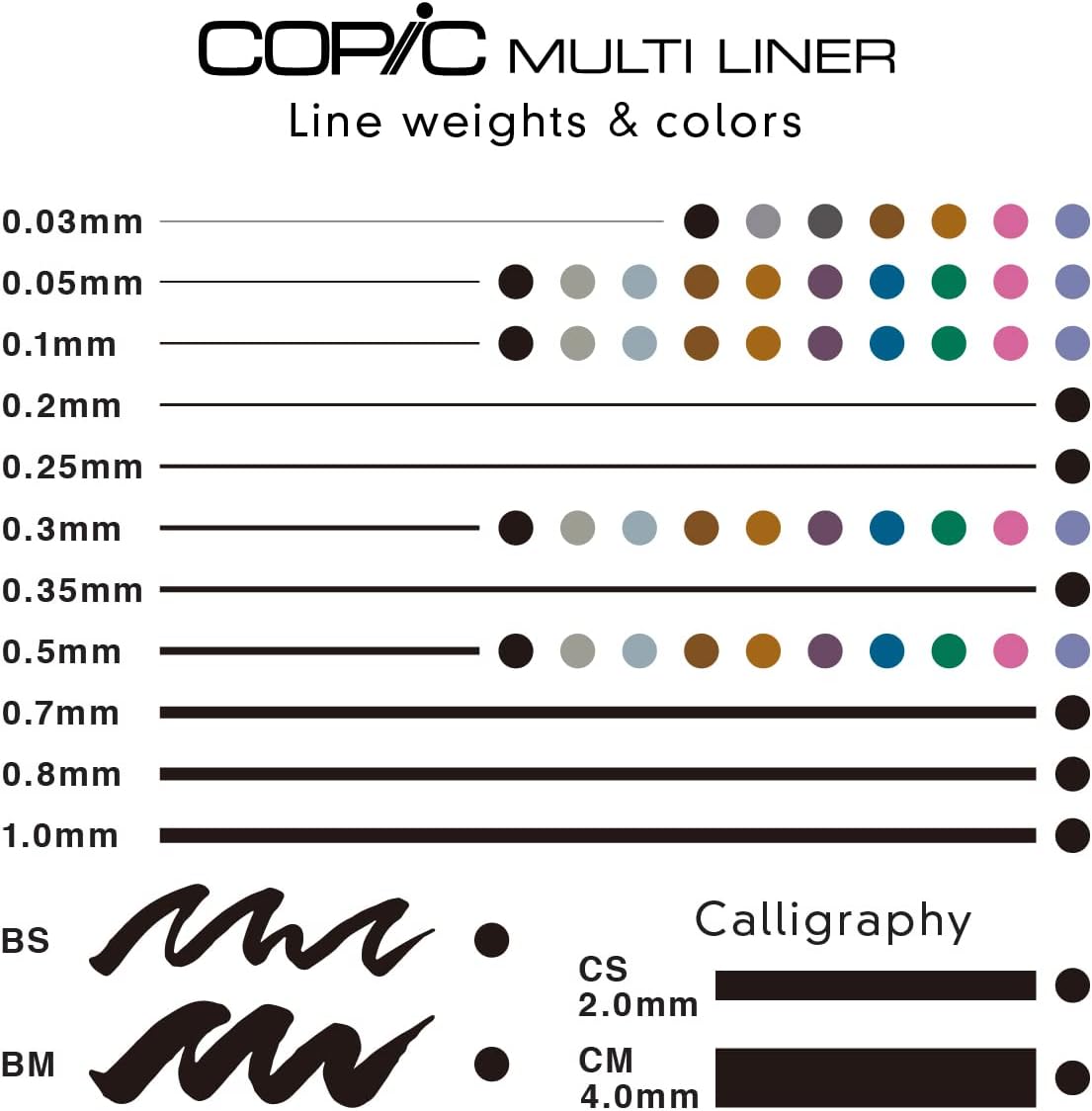 Nib sizes 0.05, 0.1, 0.3, and 0.5mm.