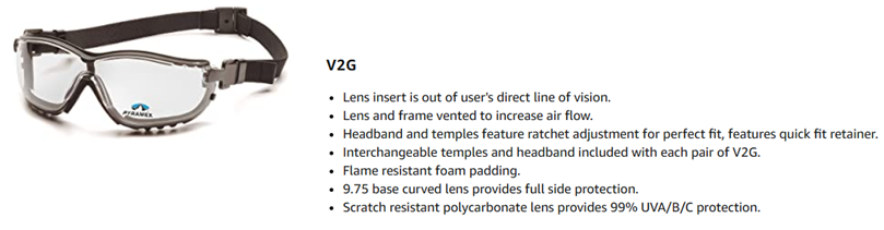 | Color | Black Frame/Clear Anti-fog +2.5 Lens |