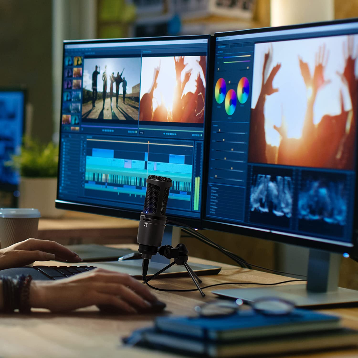 ZealSound USB Microphone,Condenser Computer PC Mic,Plug&Play Gaming Microphones for PS 4&5.Headphone Output&Volume Control,Mic Gain Control,Mute Button for Vocal,YouTube Podcast on Mac&Windows(Black)