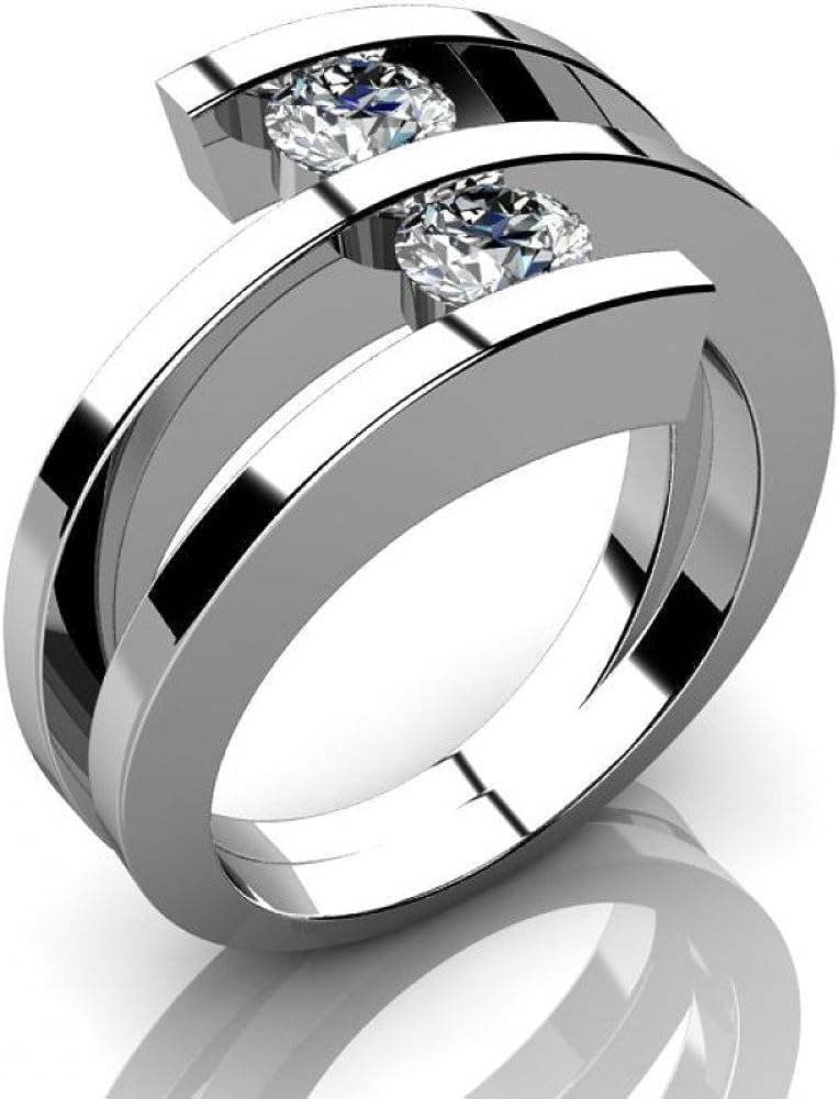 Madina Jewelry 0.60 ct Two Round Cut Diamonds Anniversary Ring in 14 kt White Gold