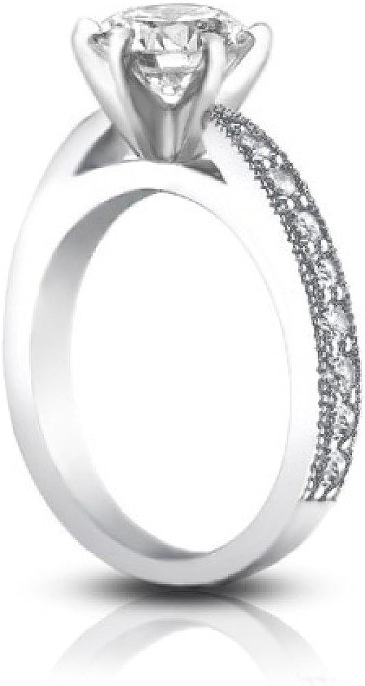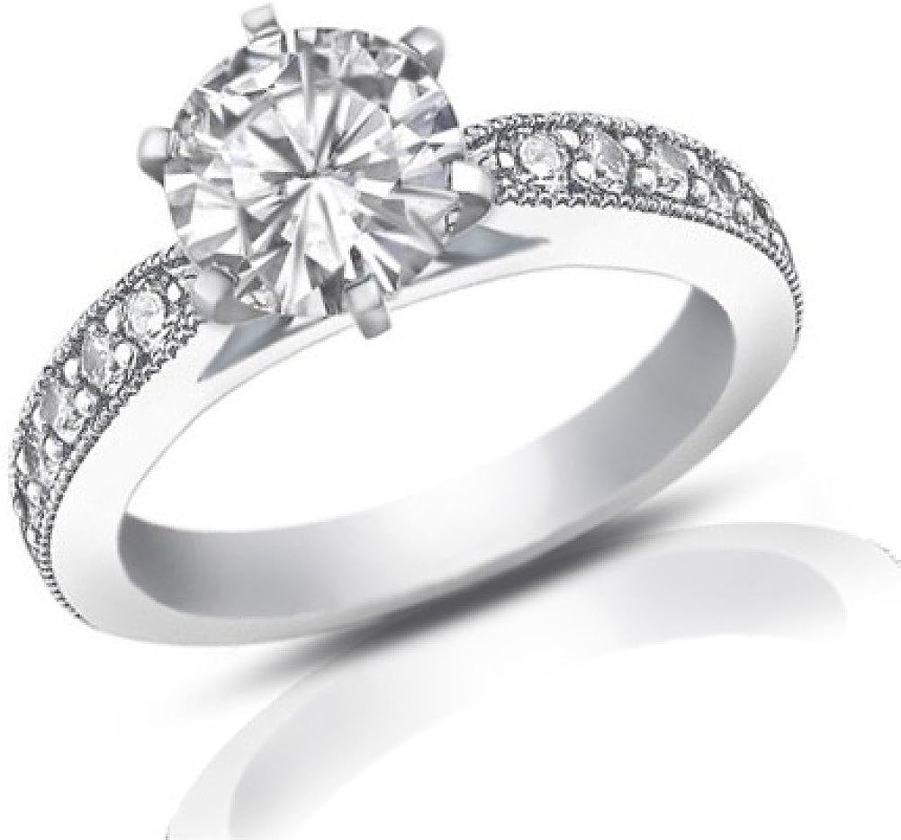 Madina Jewelry 1.40 ct Round Cut Diamond Engagement Ring Whit Millgrain on The Shank in 14 kt White Gold
