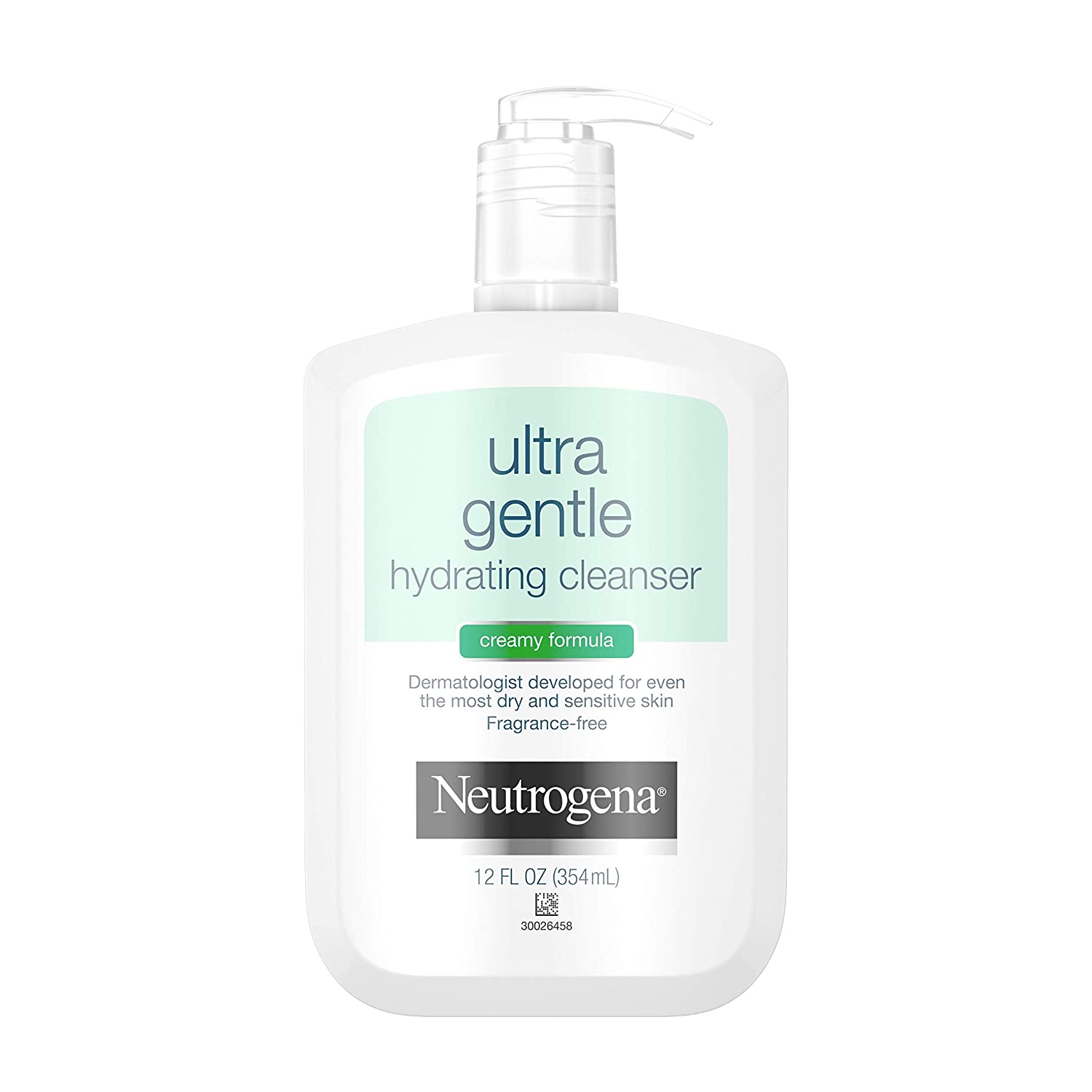 12-fluid ounce bottle of Neutrogena Ultra Gentle Hydrating Facial Cleanser for sensitive skin effectively cleanses face while leaving skin feeling moisturized and naturally soft