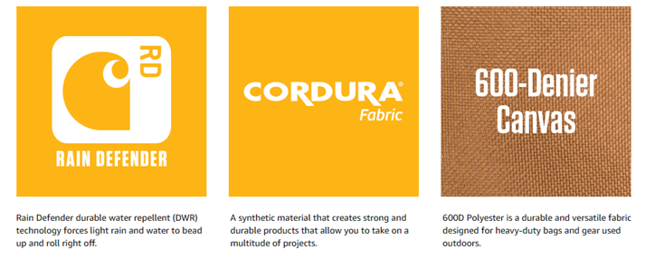 • Bag is built of sturdy 600 denier fabric with Rain Defender water repellent