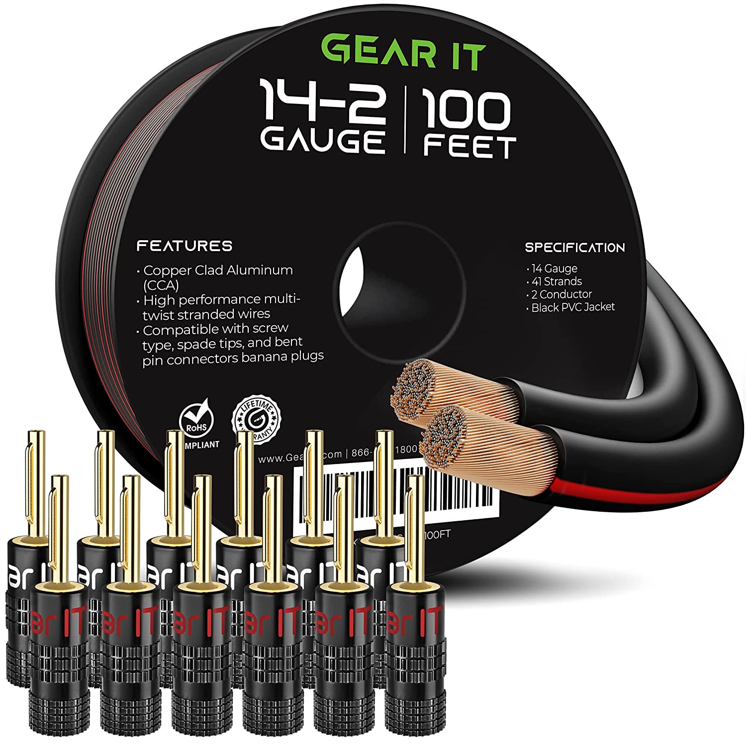 14AWG Speaker Wire, GearIT Pro Series 14 AWG Gauge Speaker Wire Cable (100 Feet / 30.48 Meters) Great Use for Home Theater Speakers and Car Speakers Black