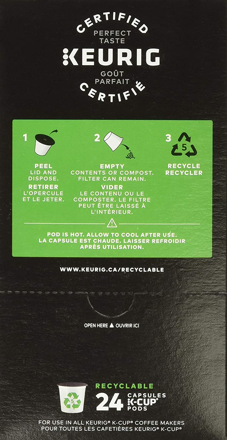 RECYCLABLE K-CUP PODS: Simple. Delicious. And Recyclable. Enjoy the same great-tasting coffee you know and love, and when you’re done just peel, empty and recycle. Check locally, not recycled in all communities. Packaging may vary.