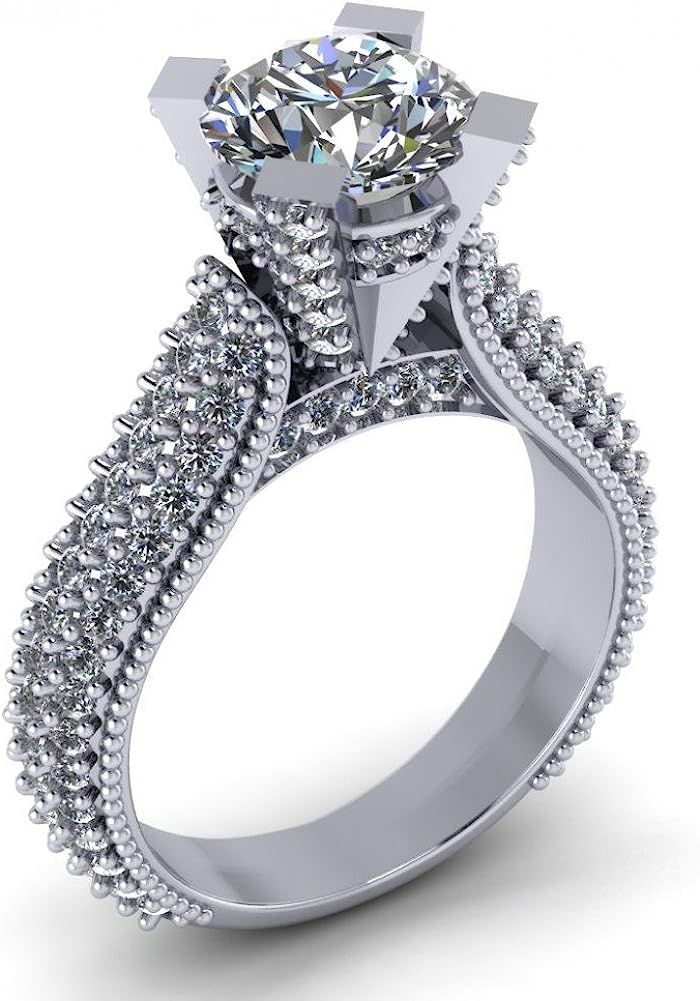 Madina Jewelry 2.65 ct Pave Set Round Cut Diamond Engagement Ring in 14 kt White Gold