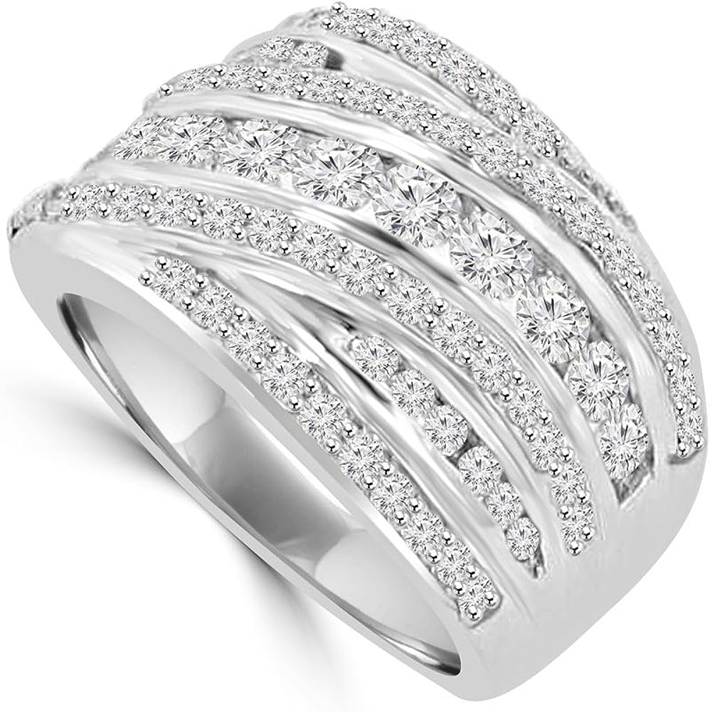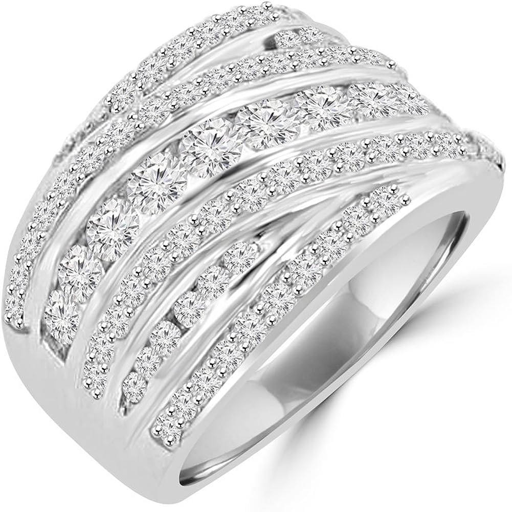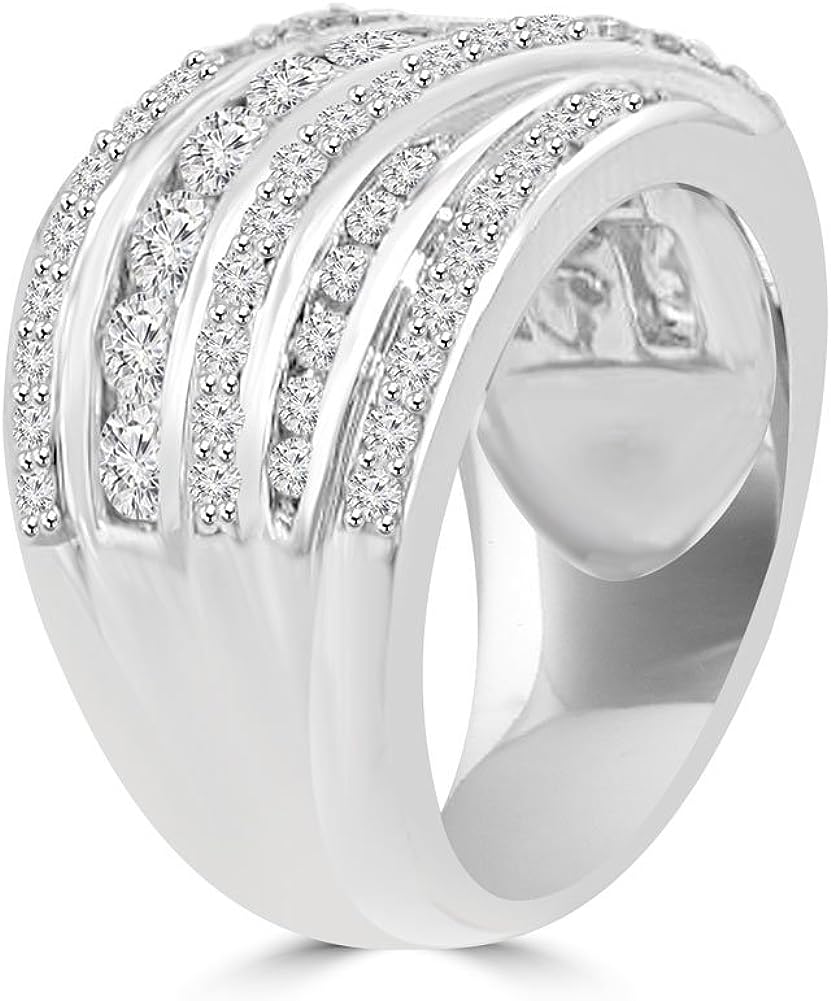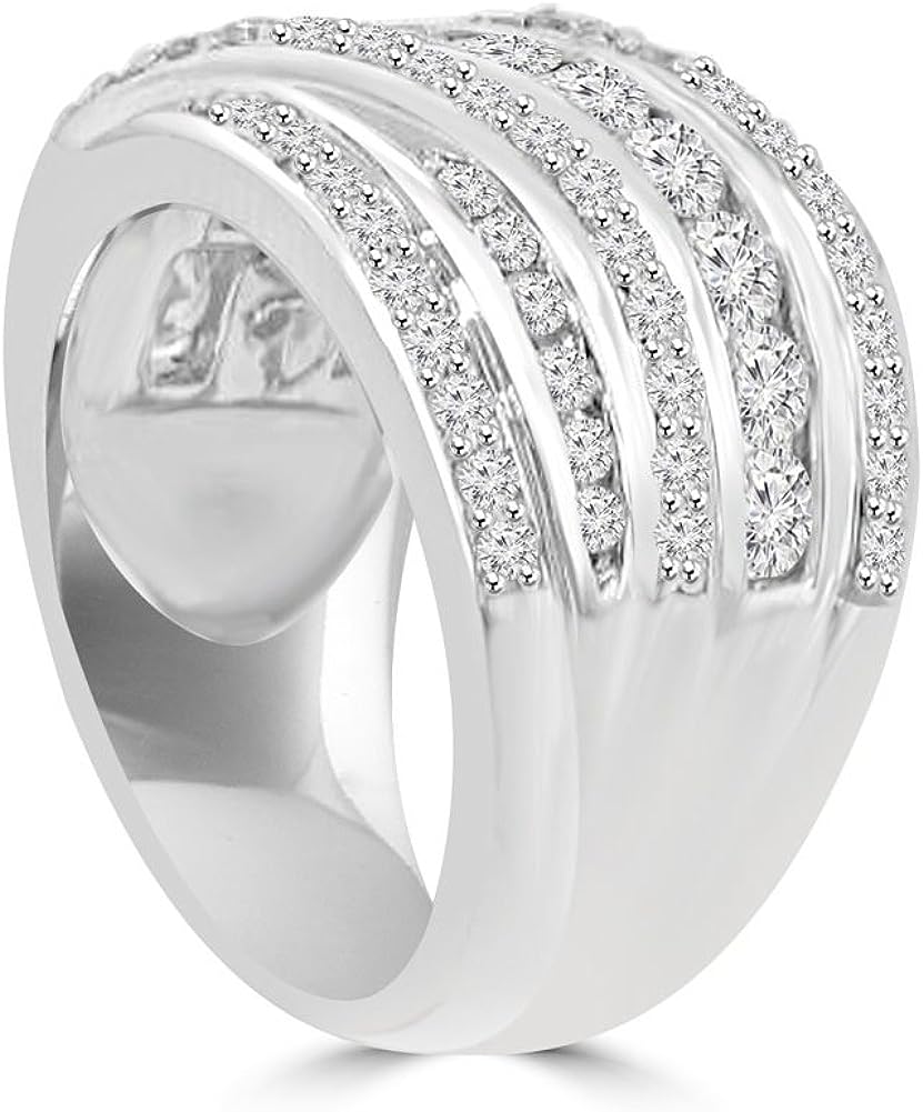 Madina Jewelry 2.10 ct Ladies Round Cut Diamond Anniversary Ring in 14 kt White Gold
