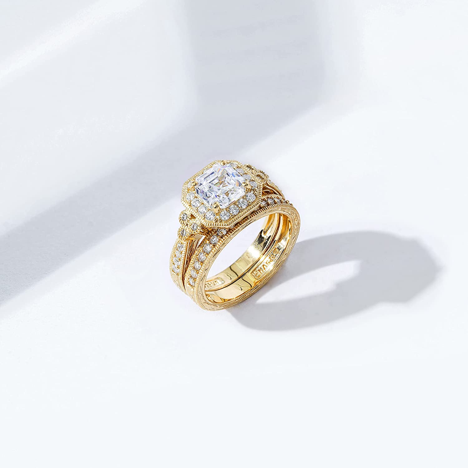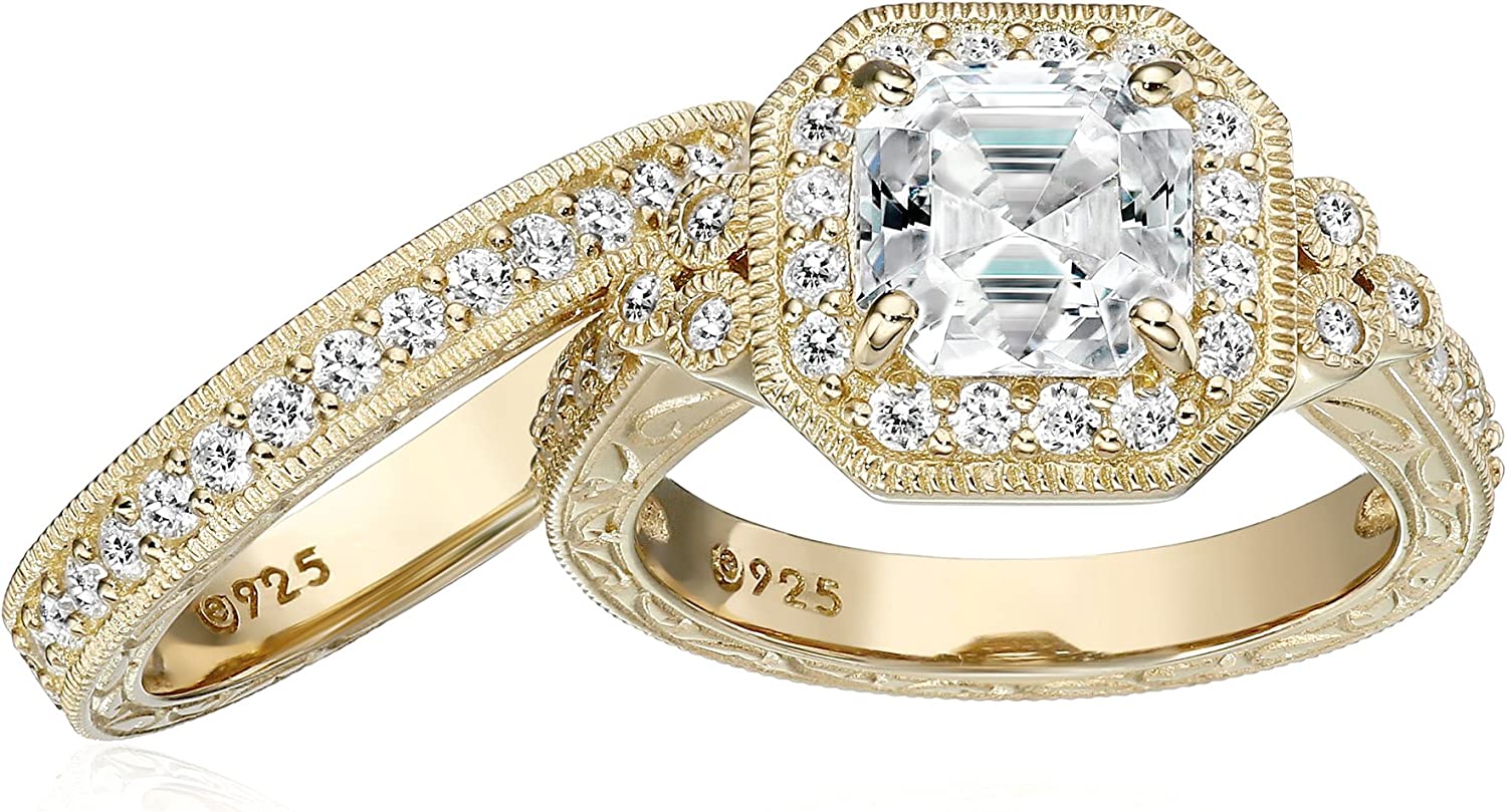 Amazon Collection Platinum-Plated Sterling Silver Antique Ring set with Asscher-Cut Infinite Elements Cubic Zirconia