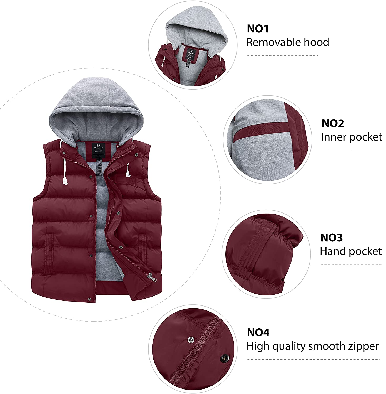 Wantdo Women's Quilted Puffer Vest Thicken Warm Winter Coat with Removable Hood