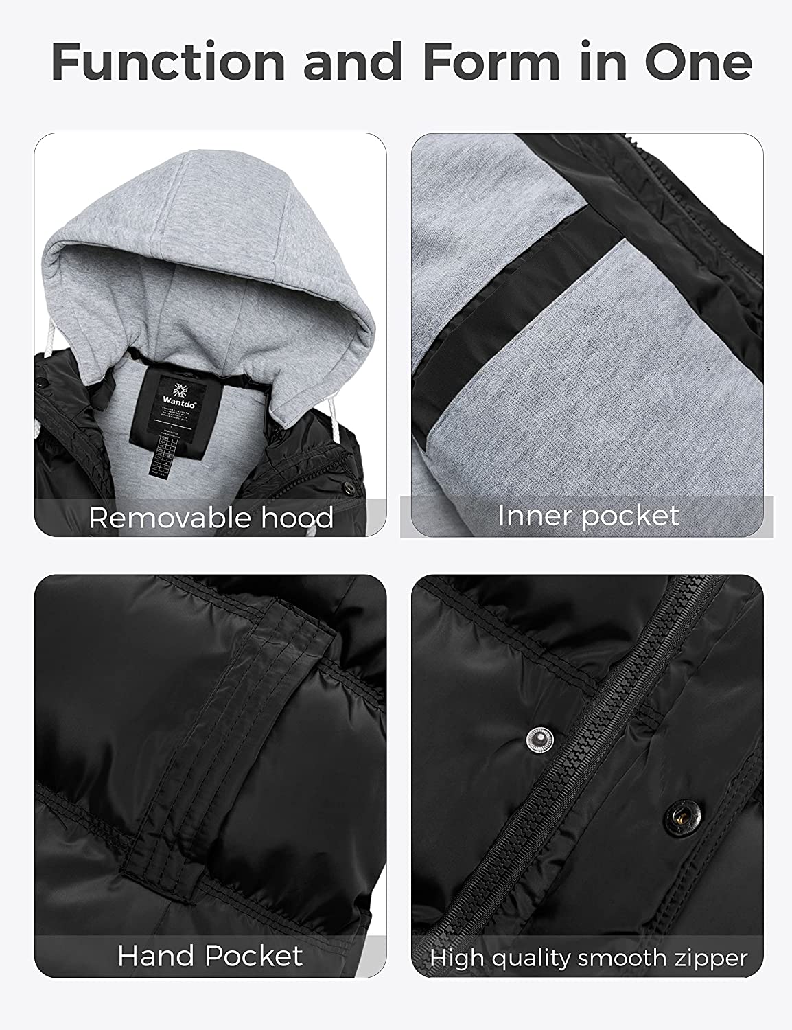 • Ready for Warm or Cold Climate - Pull up the puffer jacket's hoodie to keep your head and ears warm during gusty conditions. Remove the hoodie if you are heading outdoors on a warm and sunny day.
