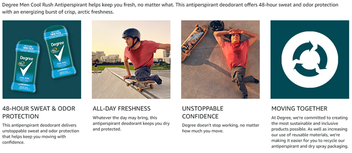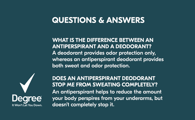 - GO BEYOND YOUR LIMITS: At Degree, we want to inspire the confidence in everyone to move more and go further. We’re here to support your journey through an antiperspirant for men that moves with you
