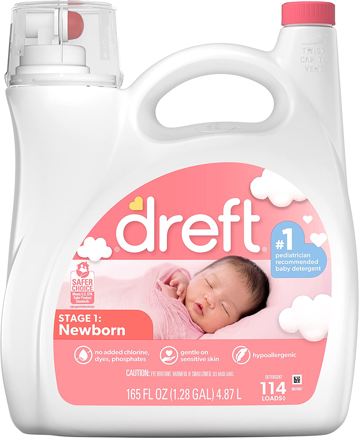 Dreft Stage 1: Newborn Hypoallergenic Baby Laundry Detergent Liquid Soap (HE), Natural for Baby, Newborn, or Infant, 46 Fl Oz, (Pack of 2)