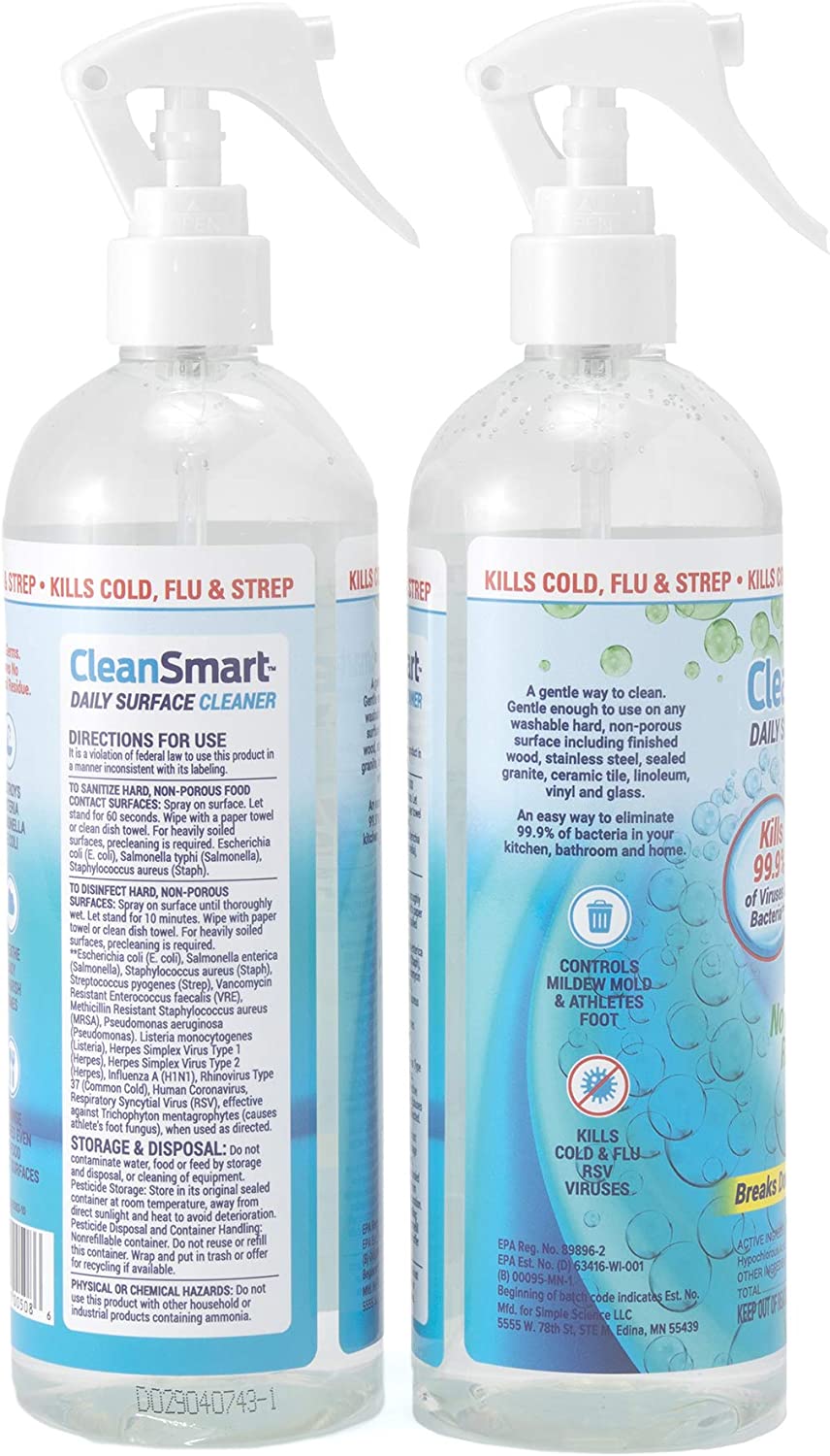 CleanSmart Disinfectant Spray, Daily Surface and Air Cleaner, Kills 99.9% of Viruses and Bacteria, 16 oz spray, (Pack of 2)