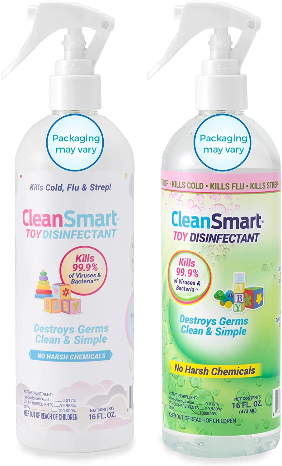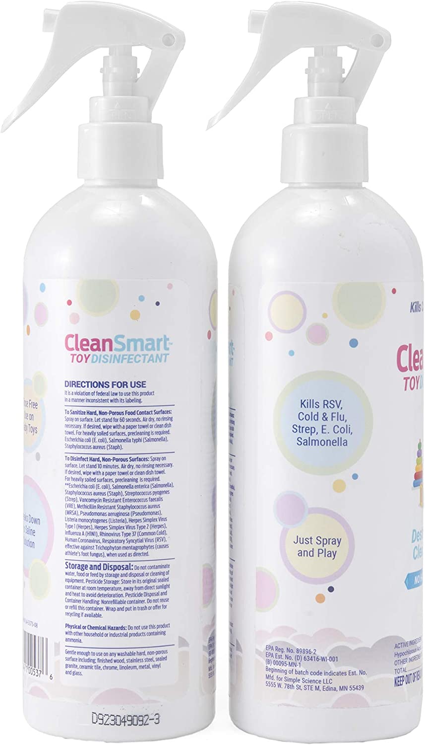 CleanSmart Toy Disinfectant Spray Kills 99.9% of Viruses and Bacteria, Rinse Free, 16 oz Bottle, (Pack of 2)