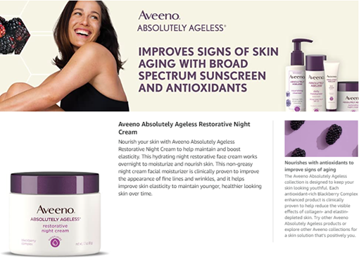 • 1.7-fluid ounce jar of Aveeno Absolutely Ageless Restorative Moisturizing Night Cream works overnight to moisturize and nourish skin
