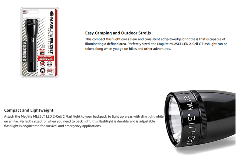 | Included Components | Maglite ML25LT-S2016: Ml25Lt 2 Cell C Led Flashlight Black |