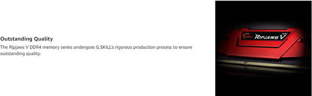 Ripjaws V series DDR4 DRAM memory is designed for sleek aesthetics and performance, making it an ideal choice for building a new PC system or for upgrading your system memory.