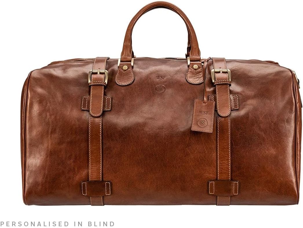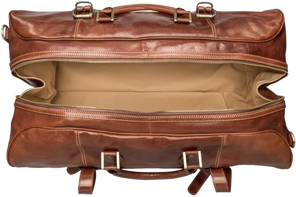 Luxury Leather Extra Large Travel Bag | The FleroEL | Handcrafted In Italy | Chestnut Tan Brown