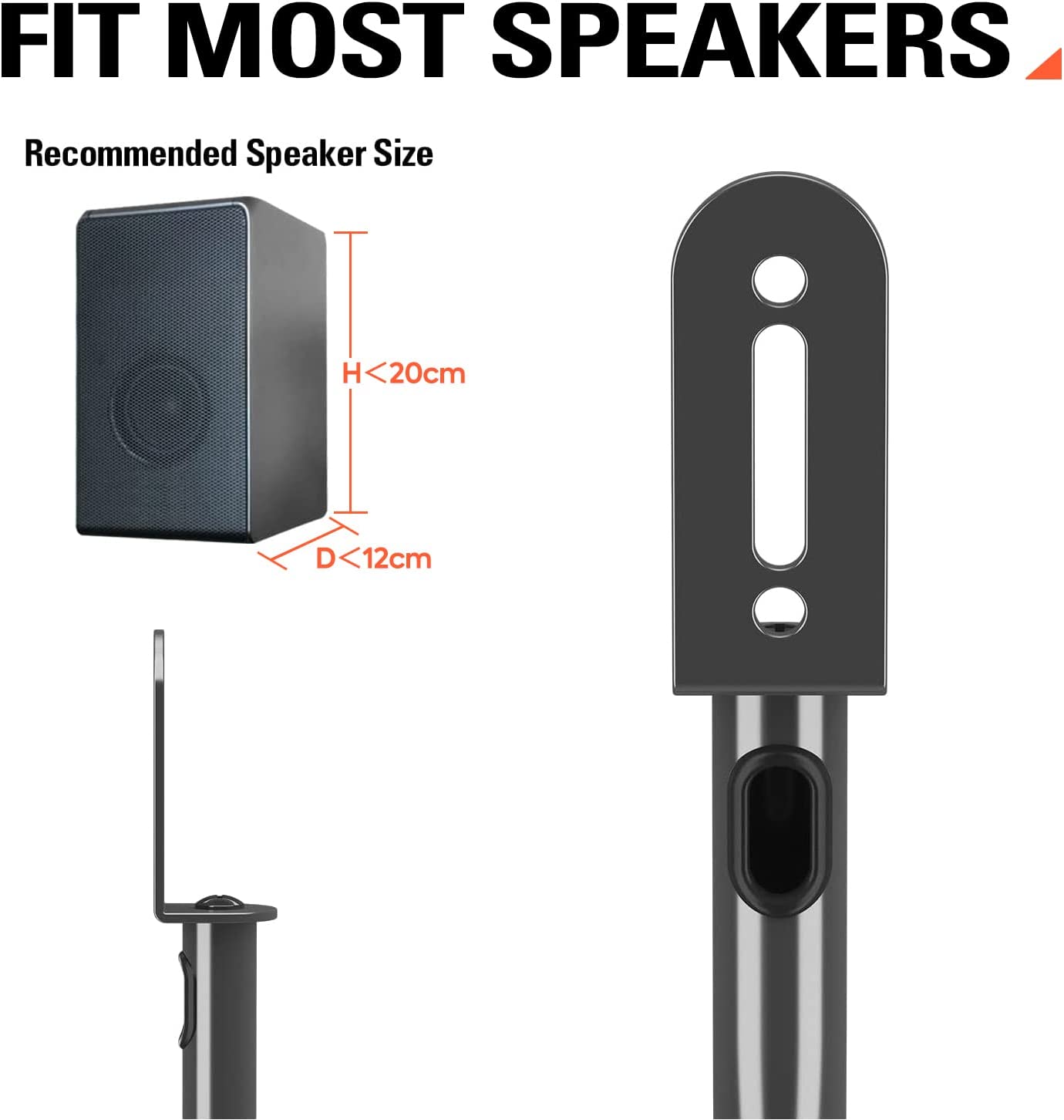 Create a Clean & Organized Look - Built-in cable hole( 0.2“ W x 0.3” H) to hide the speaker wires out of sight for a neat appearance and avoids clutter. Cable ties included in package to help run the cable around the stand tube.