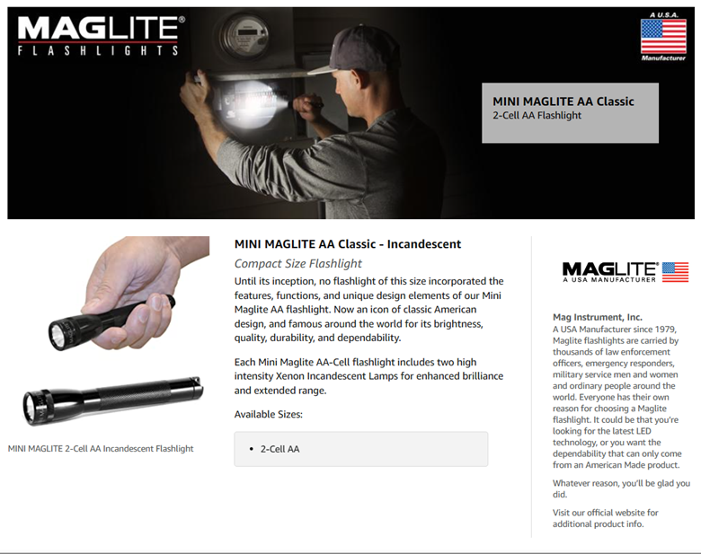 | Included Components | Maglite Mini Incandescent 2-Cell AA Flashlight Combo, Black |