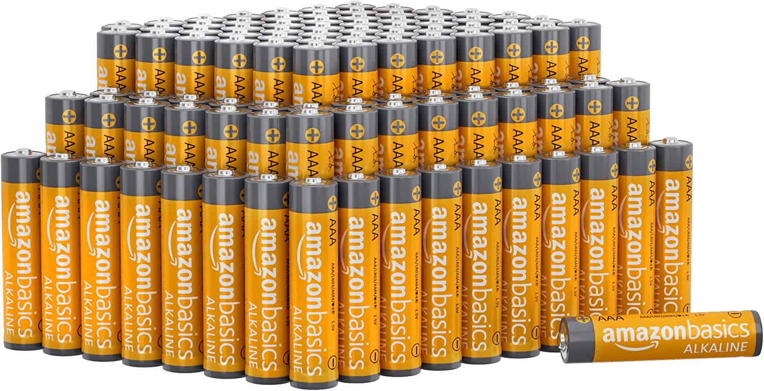 Amazon Basics 100 Pack AAA High-Performance Alkaline Batteries, 10-Year Shelf Life, Easy to Open Value Pack