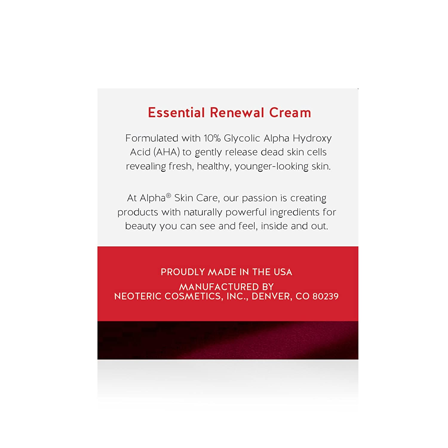 Alpha Skin Care Essential Renewal Cream | Anti-Aging Formula | 10% Glycolic Alpha Hydroxy Acid (AHA | 2 Oz, Red , White
