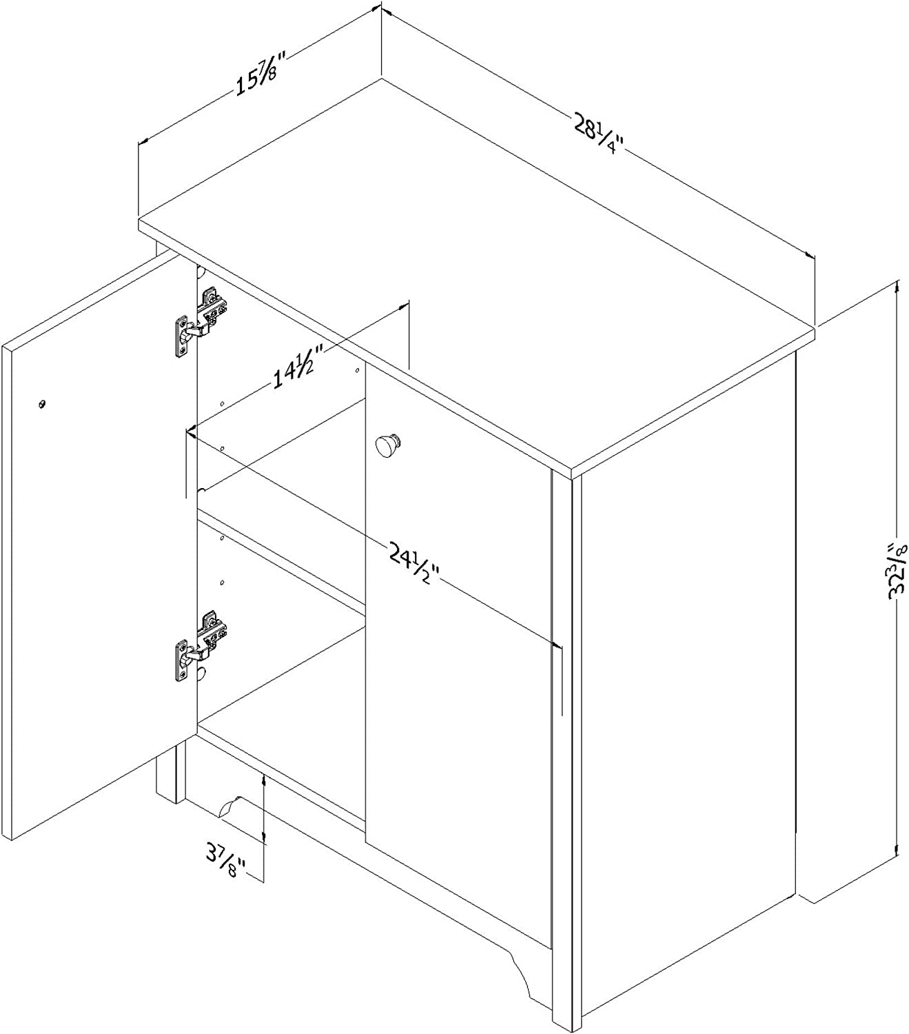 ADJUSTABLE DESIGN: The minimalist cabinet features 2 storage spaces separated by an adjustable shelf which is all neatly concealed behind 2 sleek doors with metal knobs.
