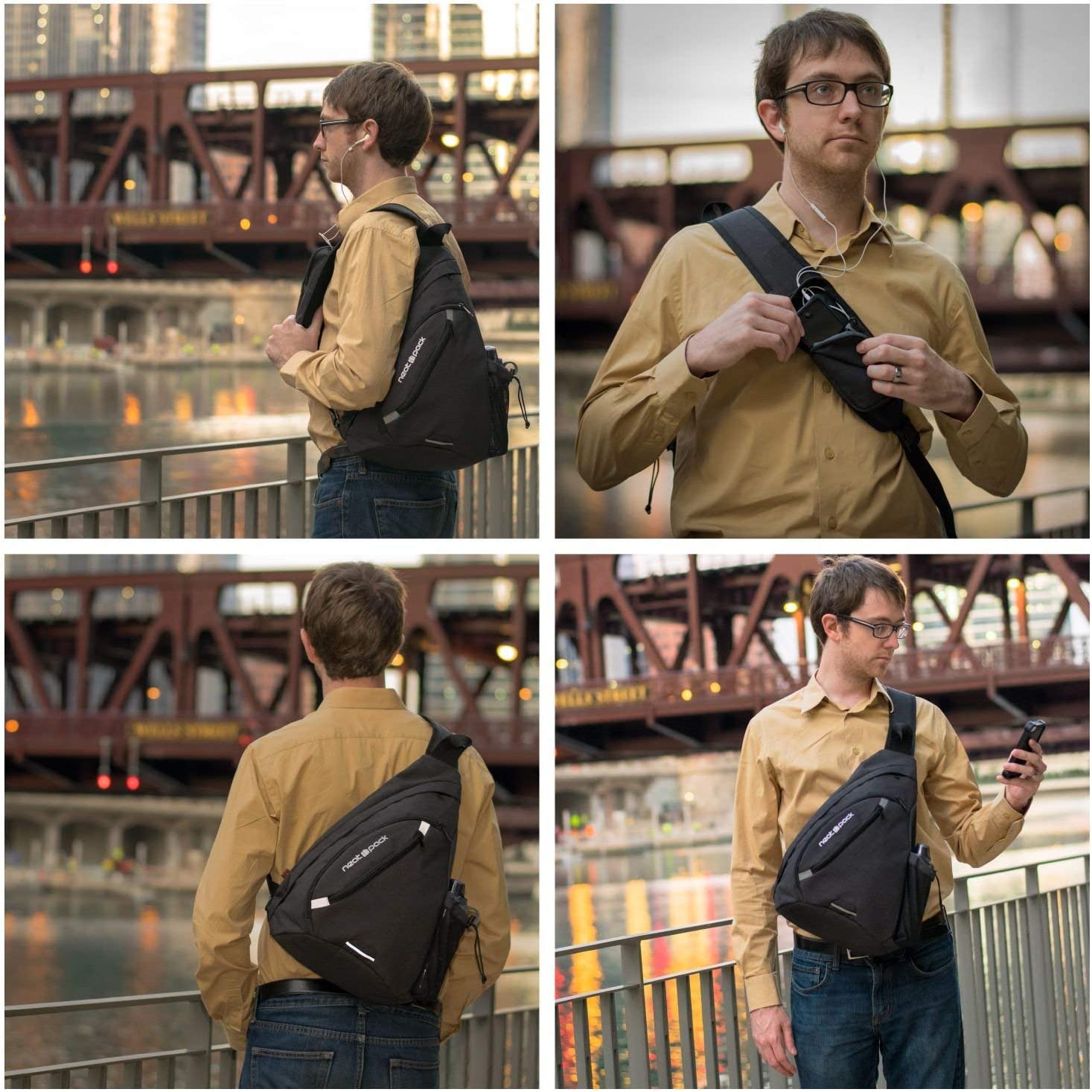 Wear a Number of Ways: Wear this sling bag over either shoulder comfortably, or in the front across the chest to deter thieves. Includes convenient front cell phone pocket with headphone access.