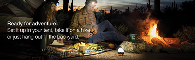 • Great for camping: Features an integrated cord and hook for hanging; Place it on a table, hang it in your tent, attach it to your belt or backpack, and more.