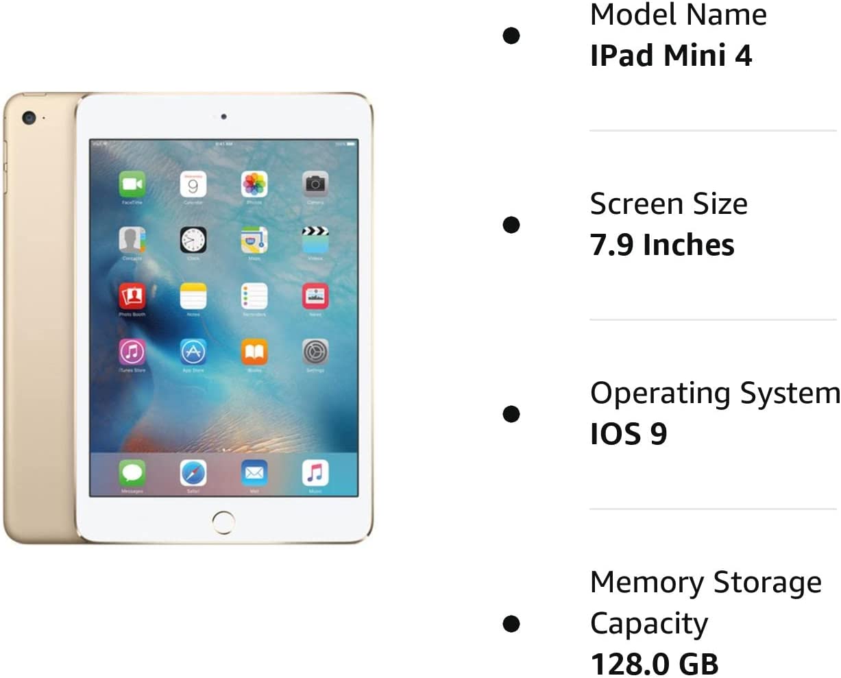 Apple iPad Mini 4, 128GB, Gold - WiFi (Renewed)