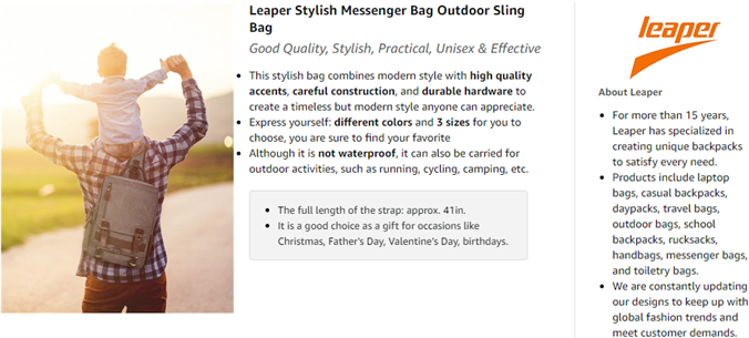 Leaper Casual Messenger Bag Cross Body Bag Travel Rucksack