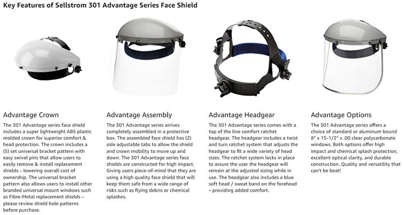 NO ASSEMBLY NEEDED: The 301 Advantage series arrives fully assembled. Just remove the protective film from both sides of face shield before using