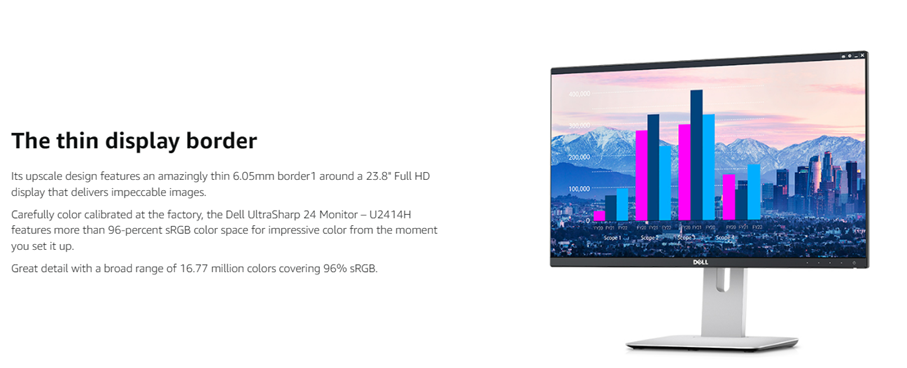 Dell UltraSharp U2414H 23.8” Inch Screen FHD 1080p LED Monitor