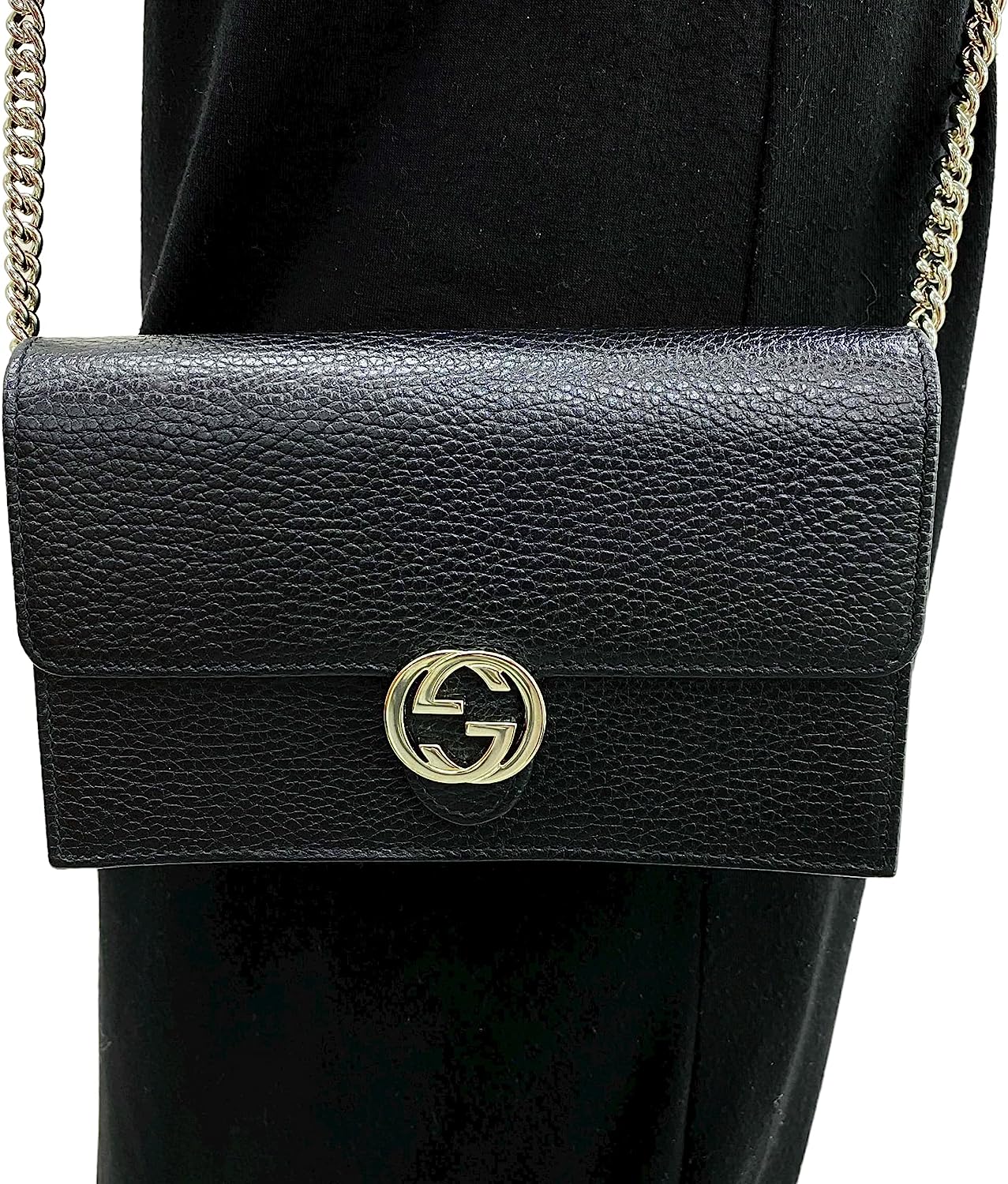 Gucci Interlocking Camelia Wallet Chain Marmont Leather Silver Handbag Italy NEW